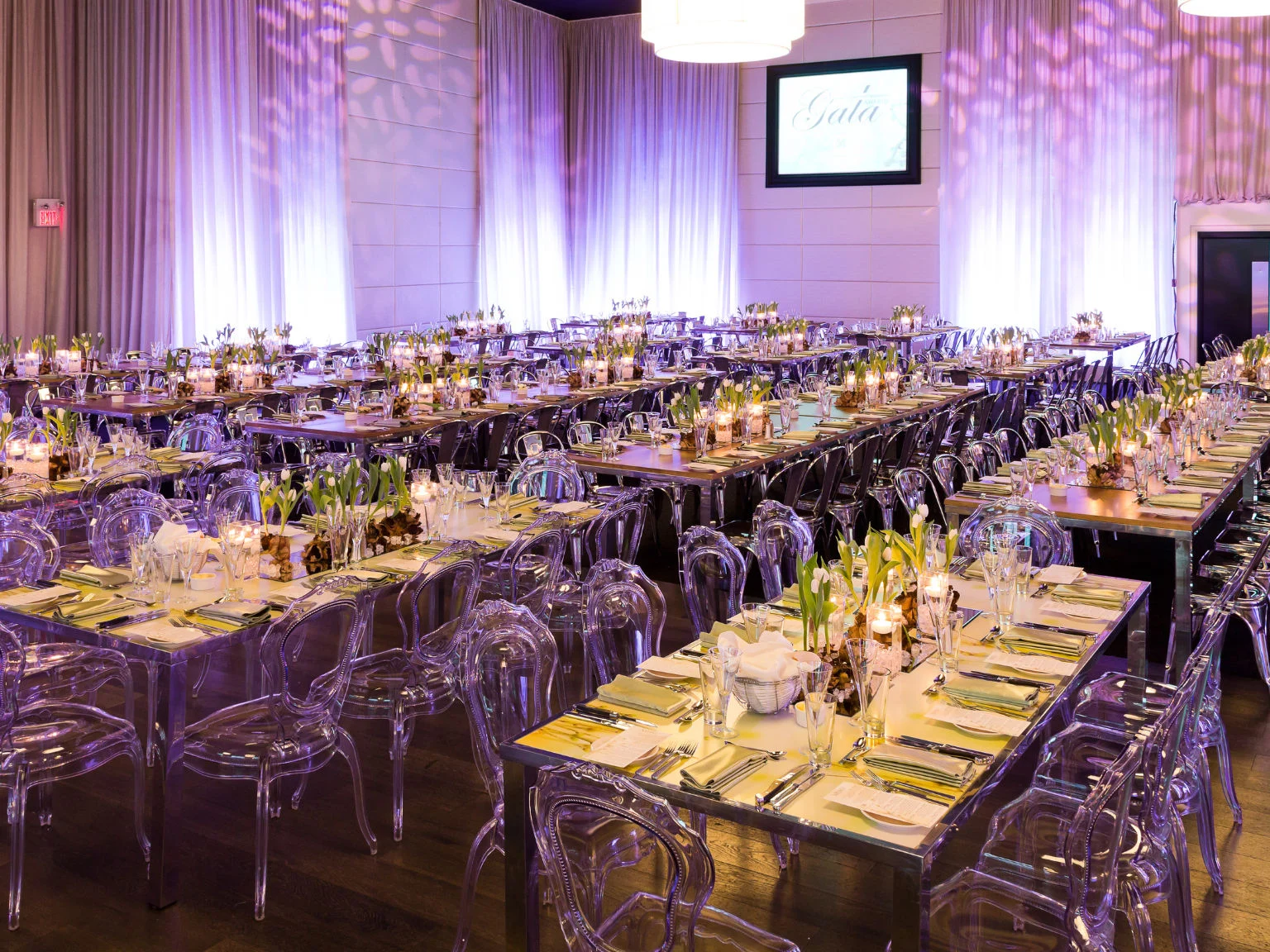 Modern dinner seating for a gala promotional event by Luxe Modern Rentals Toronto