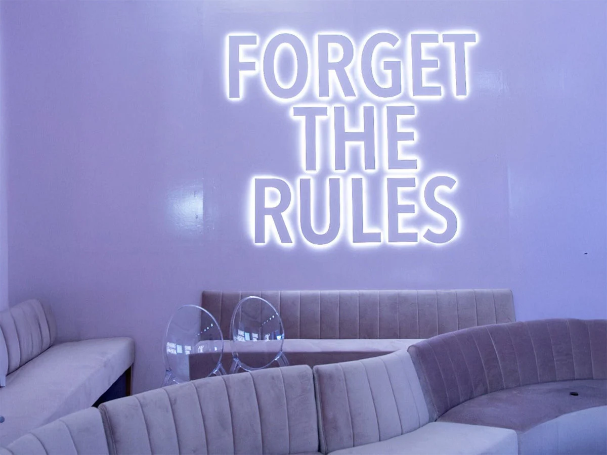 Modern Event seating and branded signage by Luxe Modern Rentals